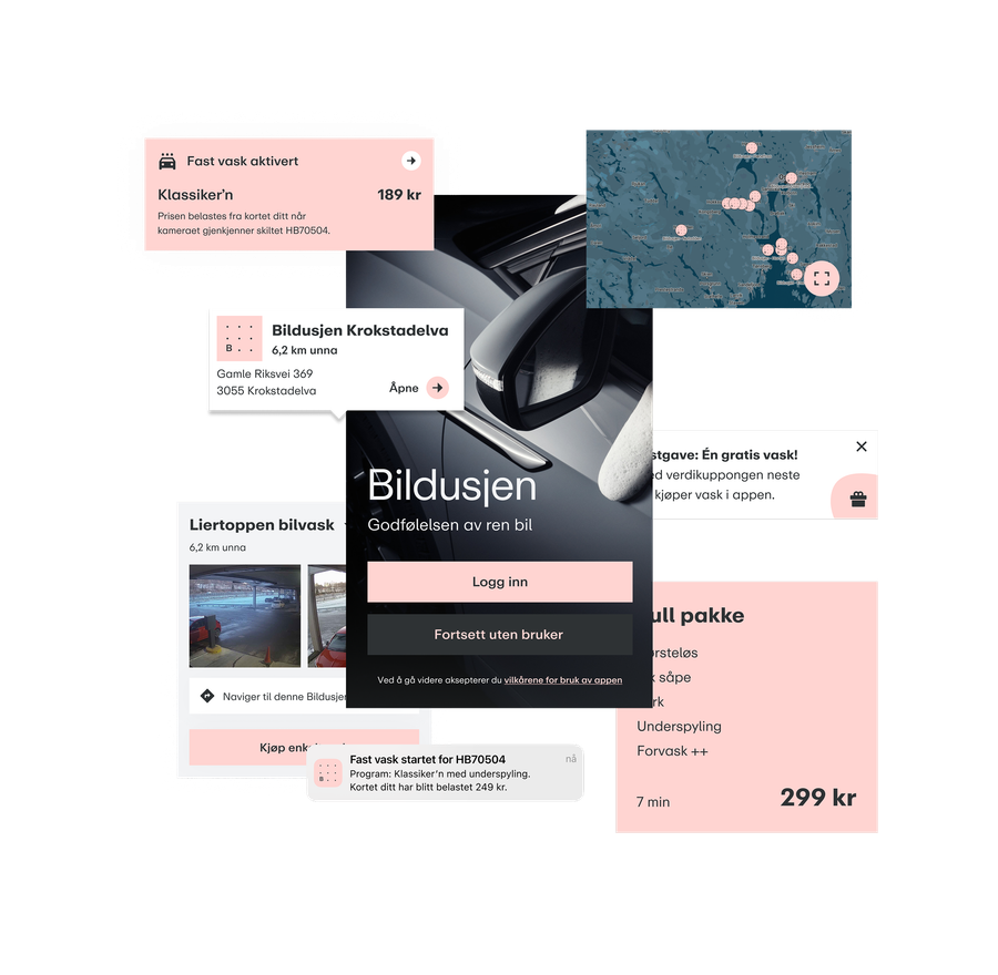Etter en oppstartsfase med hyllevareløsning for både administrasjonsgrensesnitt og kundeapp var Bildusjen klare for skreddesydde løsninger for å kunne realisere sin visjon om bli Norges beste bilvask.