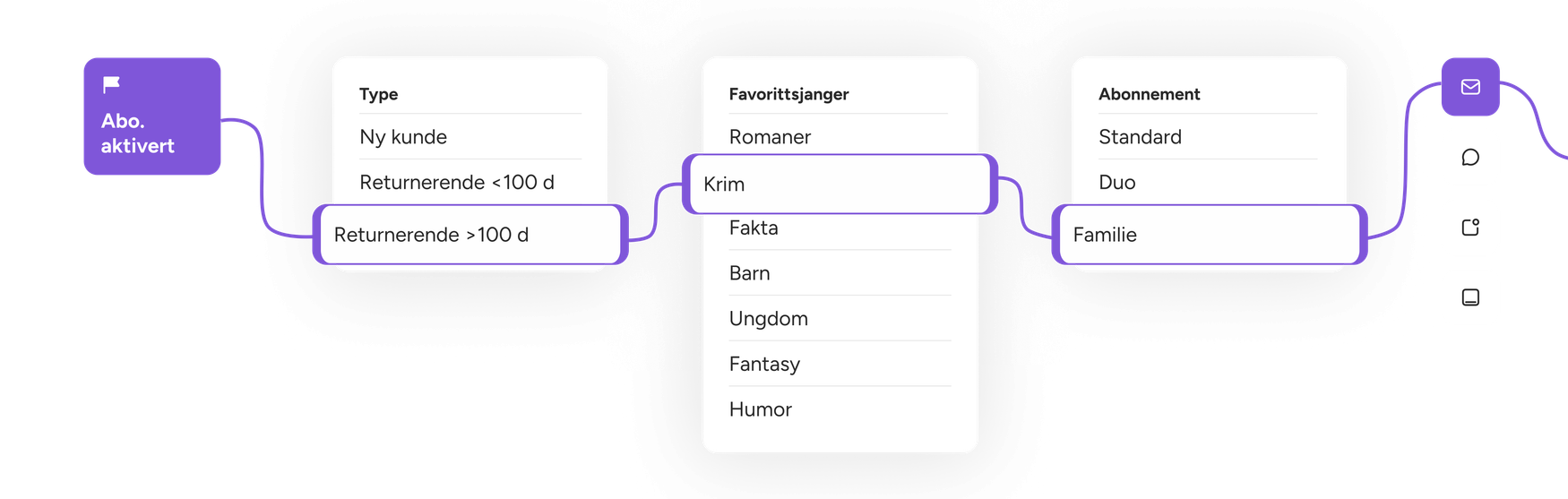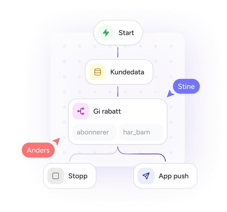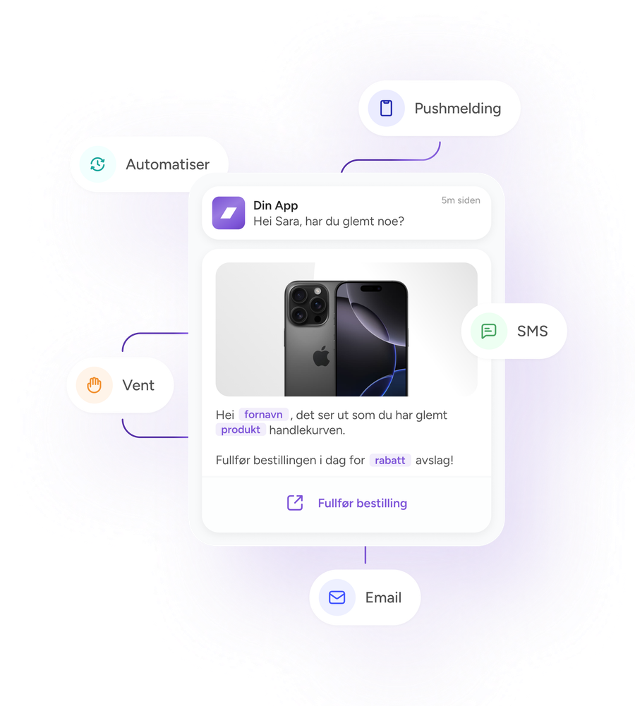 Gjør innsikt om til handling. Bygg personlige kunderreiser som trigger riktig budskap, til riktig tid, i riktig kanal. Epost, SMS, push og in-app innhold styres fra samme sted.