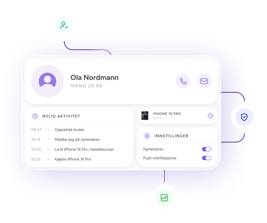 Samle alle dataene dine på ett sted. Ditt eget grensesnitt hvor alle dine ansatte får god oversikt over kunder, kampanjer, bookinger, innhold, med muligheter til å samarbeide i sanntid.